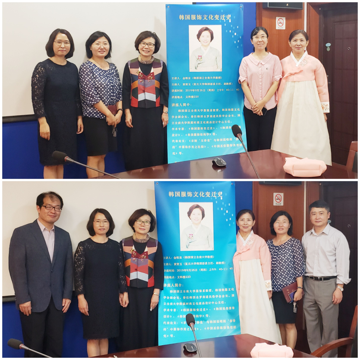 2019年9月26日,韩国国立全南大学教授金垠呈应邀前来绅士漫画 做了主题为“韩国服饰文化变迁史”的讲座,随行的五名博士生准备了精美的韩国服饰展,展示了韩国各历史时期的服装,从而让学生们更加近距离的接触了解韩服、体验韩国文化。