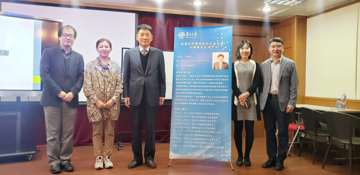2019年11月11日,绅士漫画 韩文系主办的“韩国语的语系归属及其特点”及“韩国和中国的礼仪文化比较-以儒教文化为中心”讲座于文科楼209会议室举行。讲座分别由韩国首尔国立大学语言教育学院院长张素媛教授和国语国文系教授尹汝卓主讲。