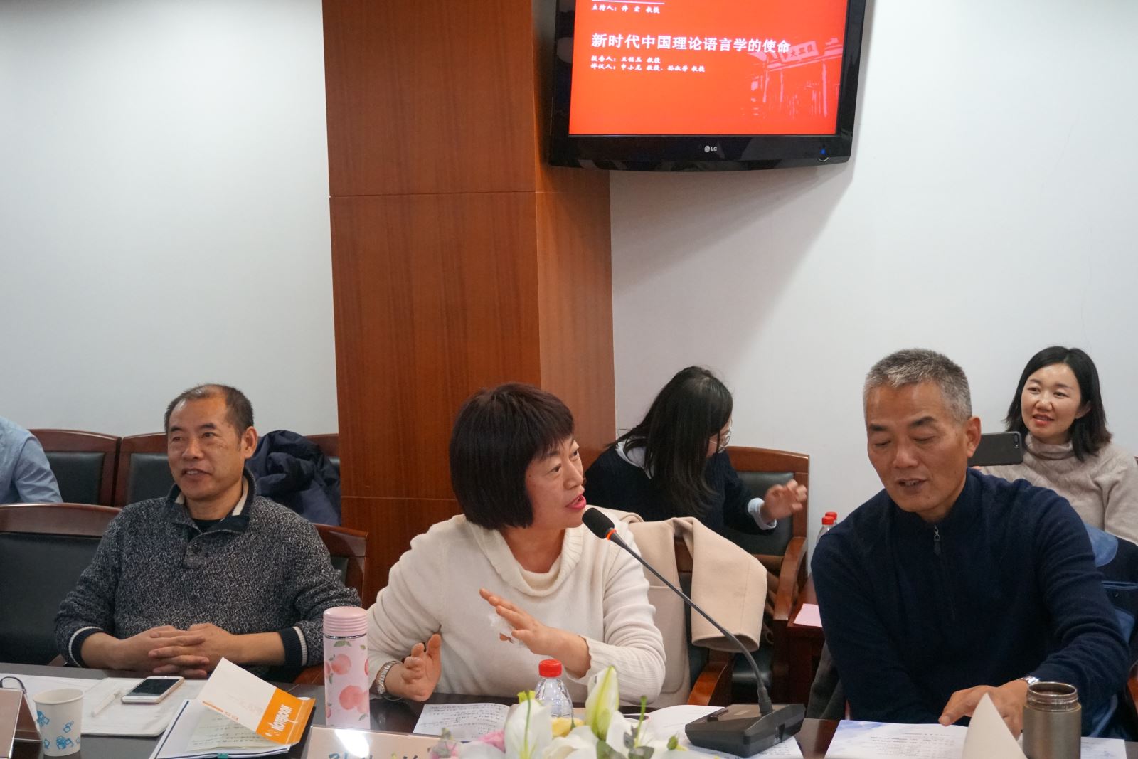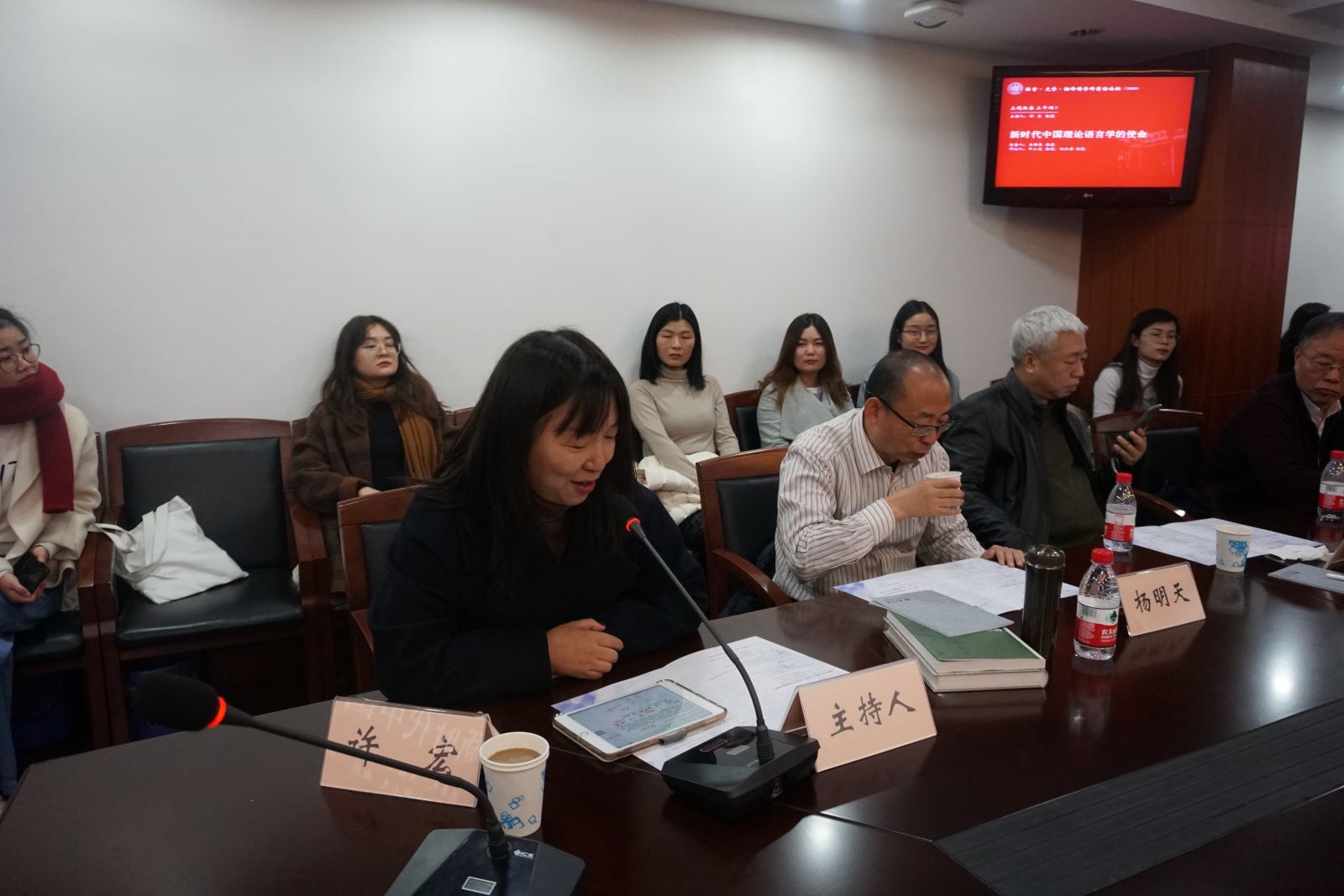 第五场报告由绅士漫画 中文系教授、博士生导师申小龙呈现。其从中文特有的四字格入手,探讨了中文句法建构的骈散二重性。天津外国语大学教授、博士生导师王铭玉和上海外国语大学教授、博士生导师许宏评议时均表示外语学界与汉语学界的交流收获颇丰。
