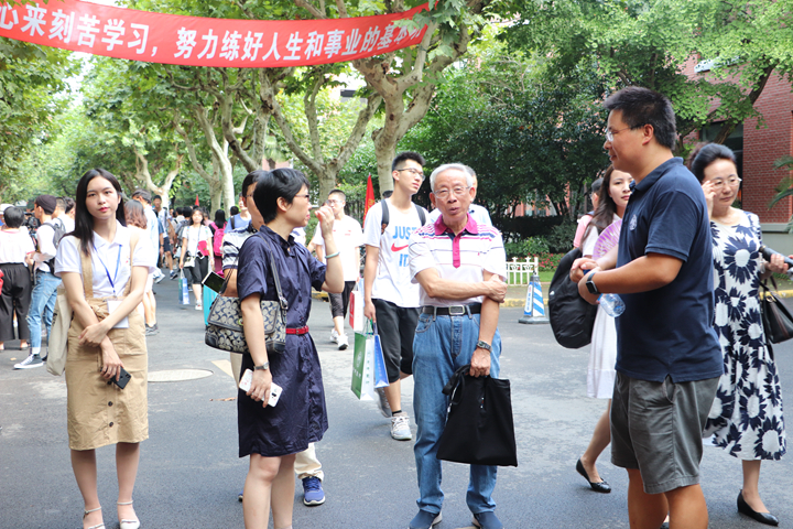 市教委领导、学校领导、书院领导和学院领导先后来到迎新摊位,看望新生和家长,慰问迎新工作人员。