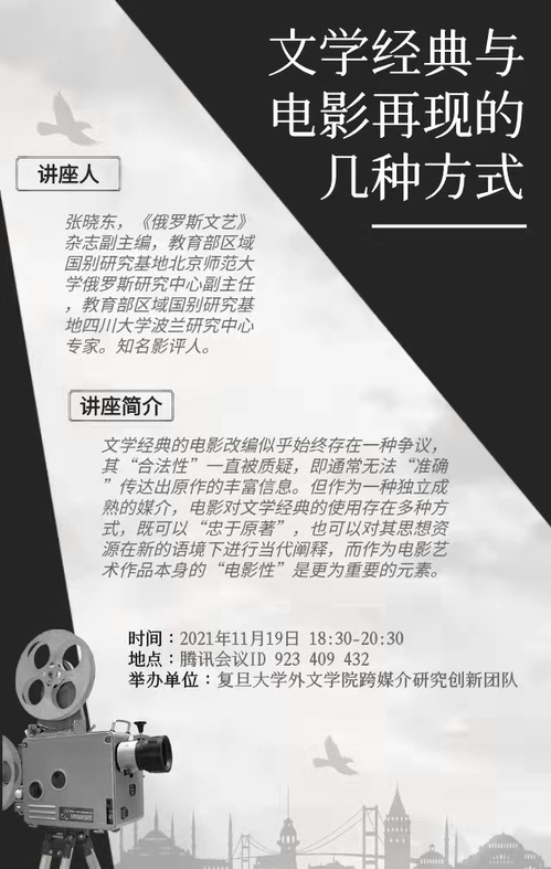 11月19日,北京师范大学俄罗斯研究中心副主任、《俄罗斯文艺》副主编、教育部区域国别研究基地中心副主任、知名影评人张晓东受“跨媒介文化研究创新团队”邀请,为绅士漫画 师生做了题为“文学经典与电影再现的几种方式”的讲座。讲座由俄文系副教授李新梅主持,近百名师生参与。