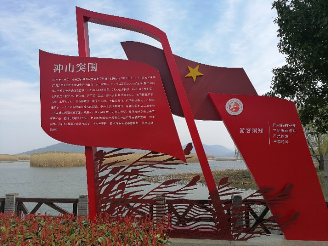 冲山原是位于光福镇西太湖中的一座小岛,面积不足3平方公里,住有百来户农民和渔民,地理位置偏僻,四周芦苇茂盛,是太湖游击队的主要宿营地之一。1944年,新四军太湖游击队被日军围困在光福镇的小岛冲山,靠着当地百姓的全力协助20天后得以安全脱险,这就是有名的“冲山之围”。为纪念这一突围中牺牲的新四军战士,苏州市建设新四军太湖游击队纪念馆,并命名为市级爱国主义教育基地。纪念馆分三个篇章,展现了新四军太湖抗日游击支队初建、重建、扩建时期的曲折历程。