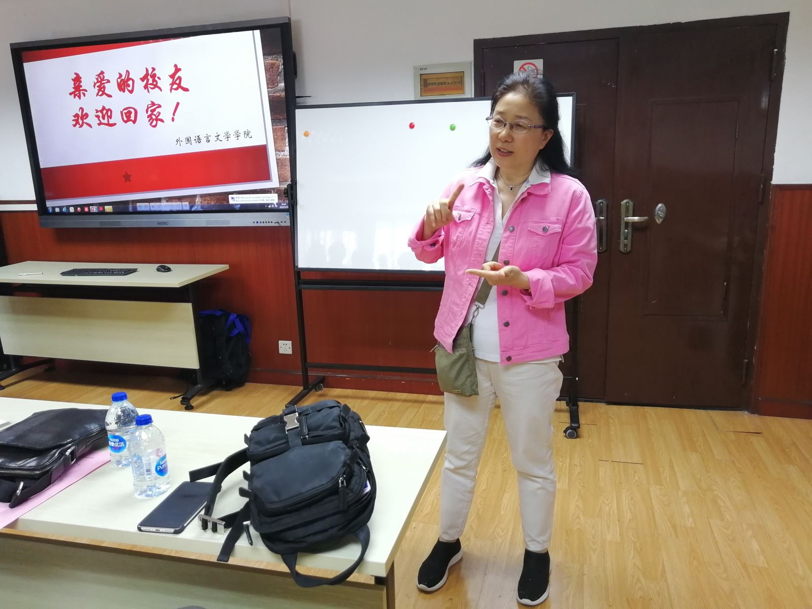 80届西班牙黄媛媛校友,特地从北京赶来参加返校日活动。结合个人工作成就,表达了对各位西班牙语任教老师的感谢,也提出对青年学子的寄语。她表示,学外语要保持好奇心,接触不同学科和学生活动,以此开阔视野,在工作中更好地展现能力。