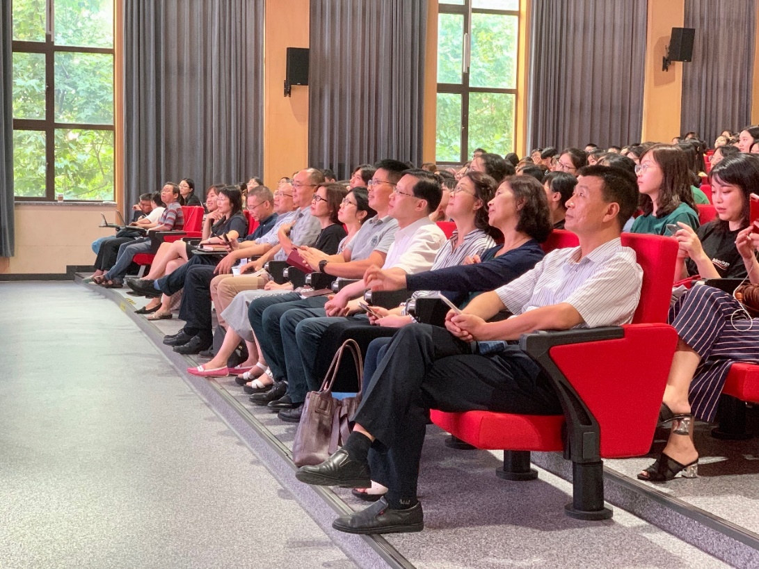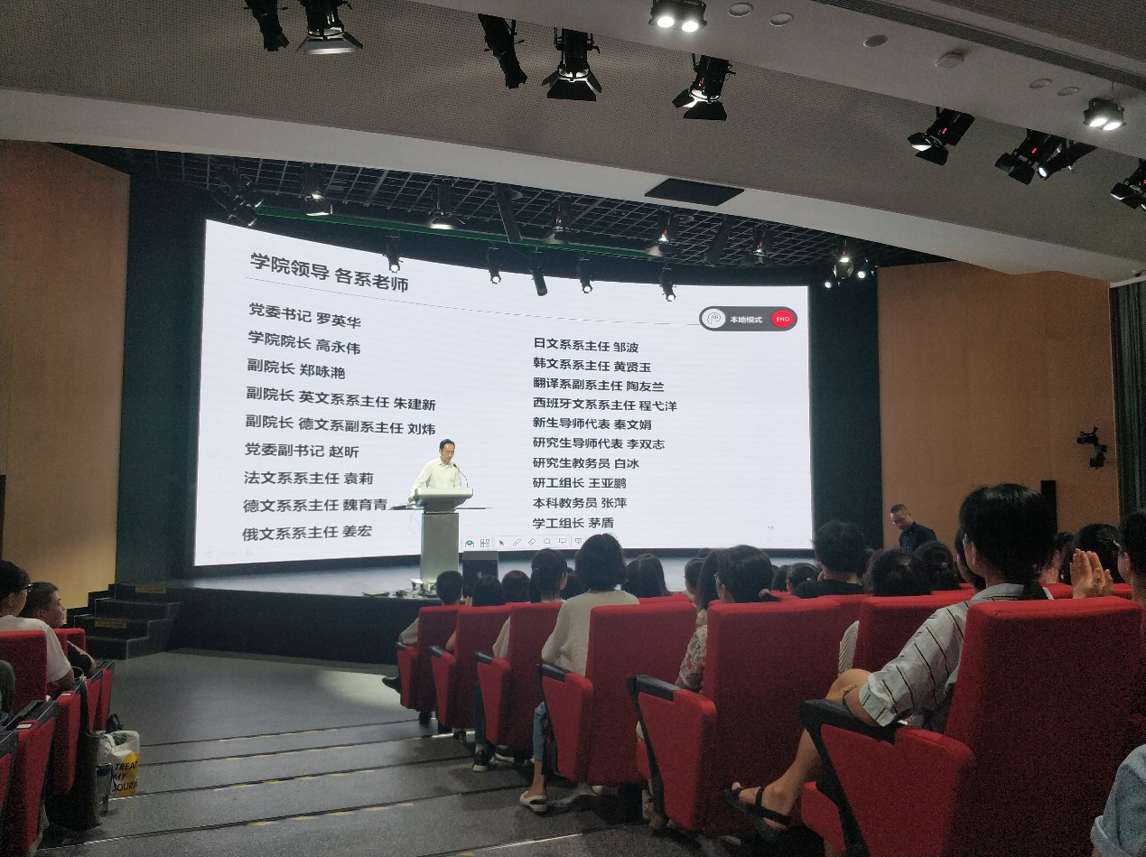 2019年9月5日下午,绅士漫画 在5301报告厅举行2019级新生见面大会,学院党委书记罗英华、院长高永伟,院领导郑咏滟、朱建新、刘炜、赵昕,各系系主任、本科生导师代表、研究生导师代表、教务员、学工办负责人,全体2019级本硕博新生出席大会。