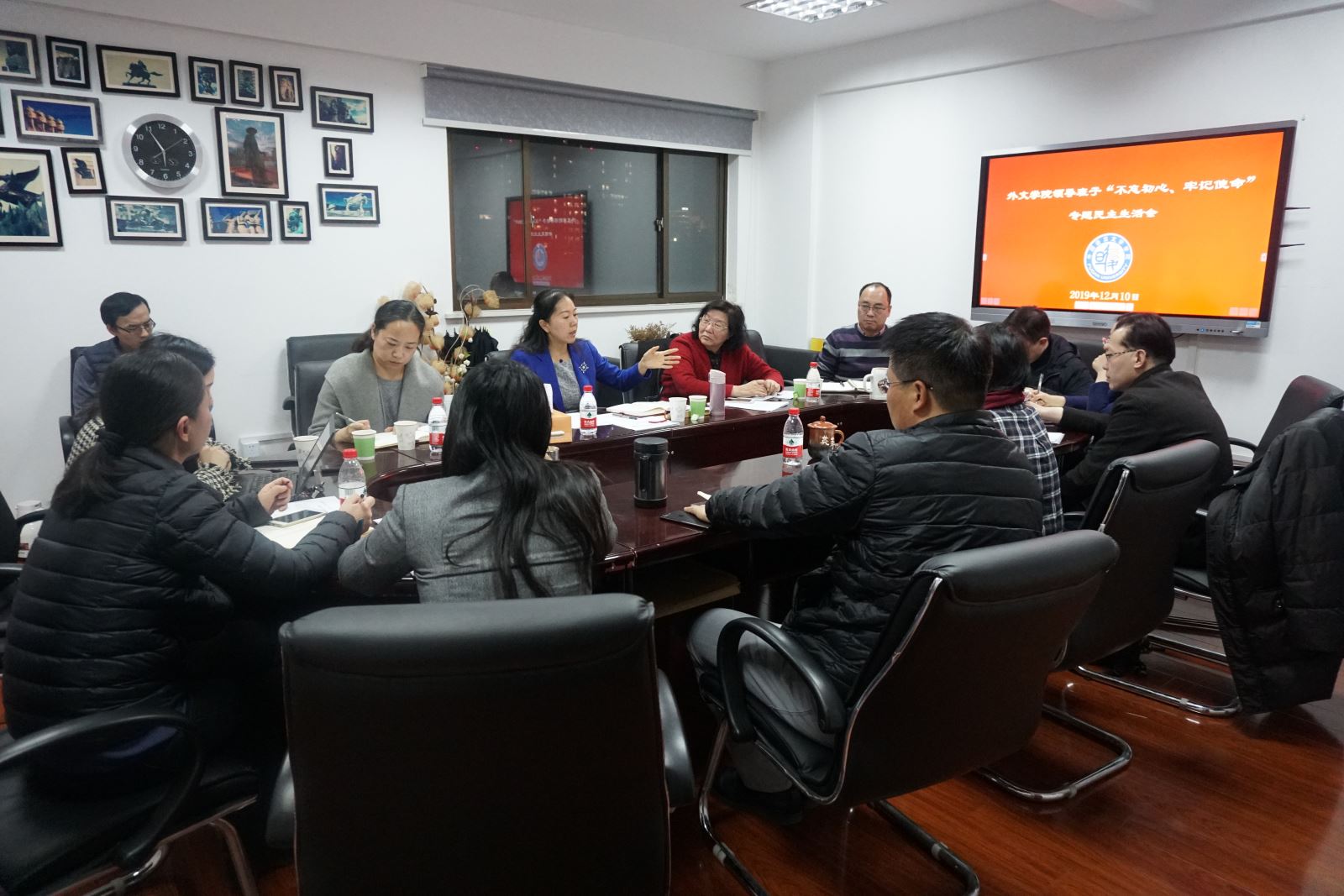 12月10日下午,绅士漫画 党政领导班子召开“不忘初心、牢记使命”专题民主生活会,绅士漫画 党委书记罗英华主持会议。校党委副书记尹冬梅到会指导,校第五巡回指导组组长张宏莲和纪委办申华蕾同志出席会议。