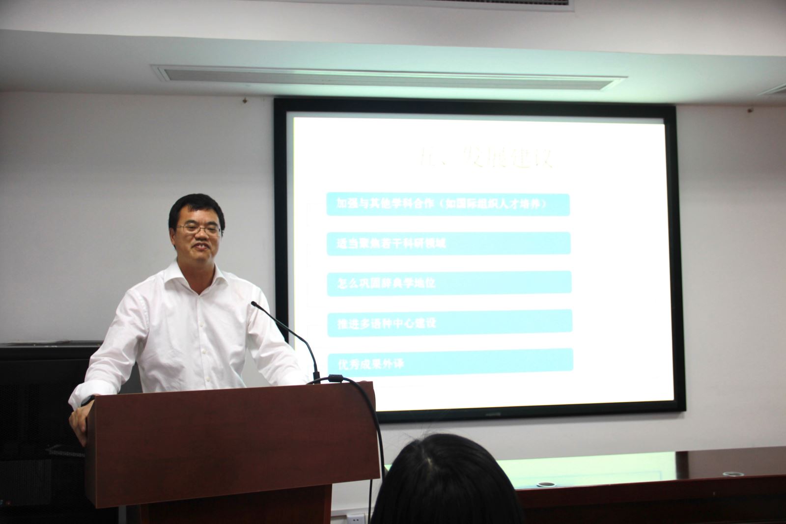随后,学院教师代表苏耕欣、褚孝泉、Miles Link、段枫、杨振、姜宏、卢丽安、黄贤玉围绕学科建设、人才队伍、教育教学、学术科研、青年教师发展、小语种学科发展等问题先后发言。座谈中,许宁生校长不时就关心的问题提问,与发言教师热烈讨论、互动交流。
