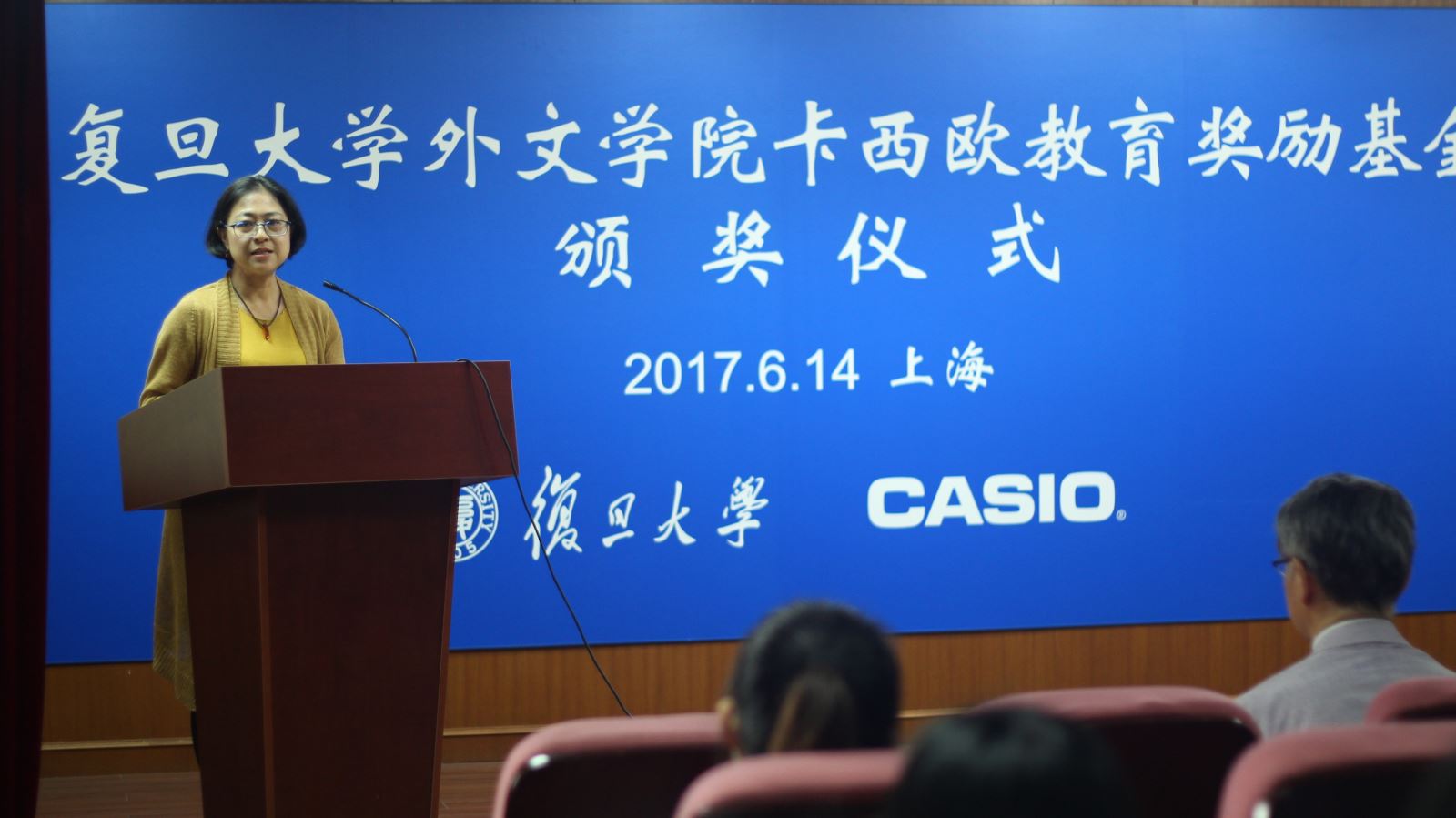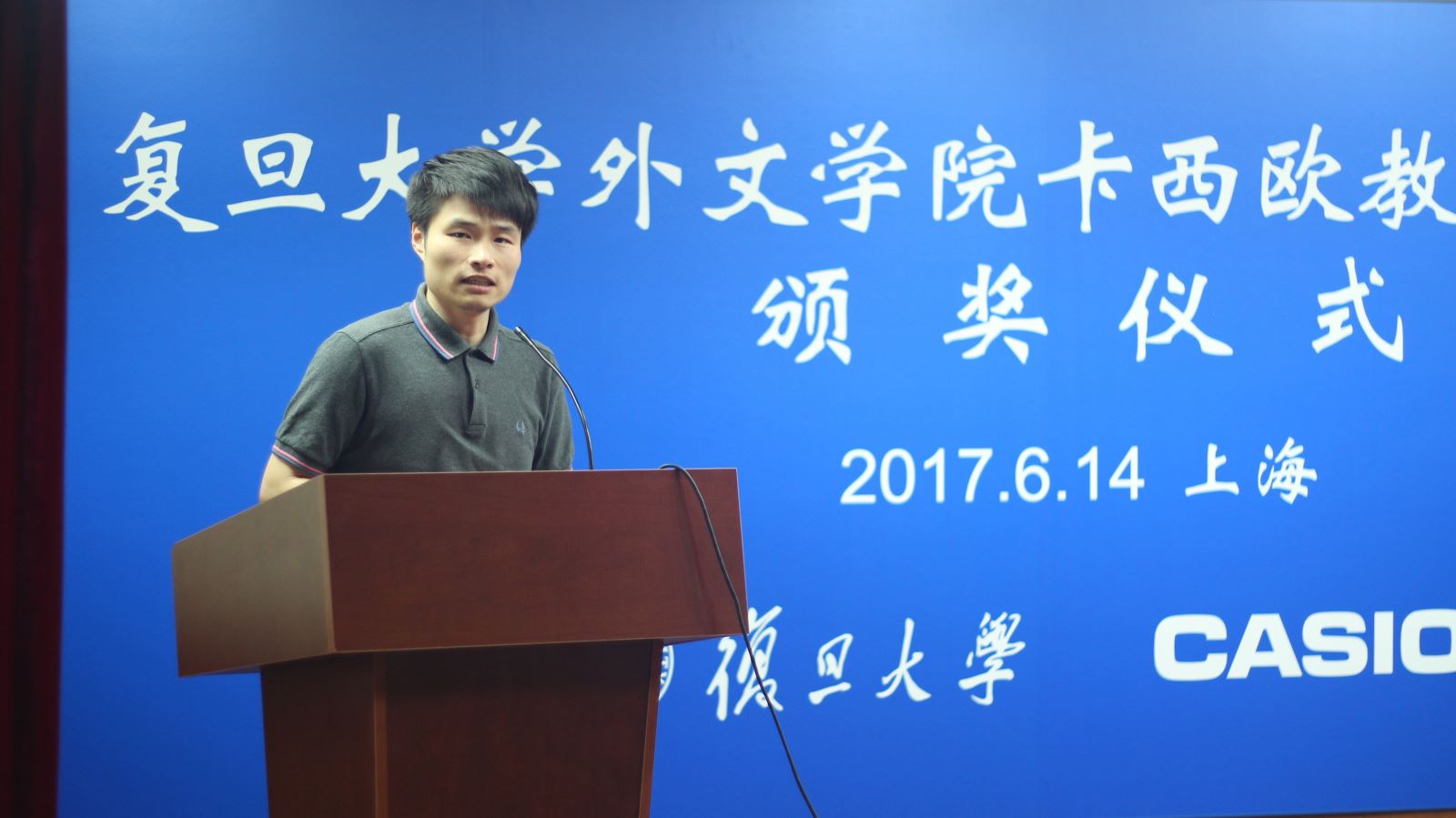 获奖师生代表分别发表了感言。法语系陈杰老师代表获奖教师发表感言,他谈及了自己的学术之路,感谢绅士漫画 为青年教师提供的优越、舒适的工作环境以及科研方面的鼓励与支持,也感谢卡西欧公司为我院提供的资助,他将会更加努力工作。本科生孙予聪讲到,感谢卡西欧公司为她提供了这样一个平台,感谢绅士漫画 的老师们这四年对她的栽培,她将继续努力坚持实现自己的梦想。