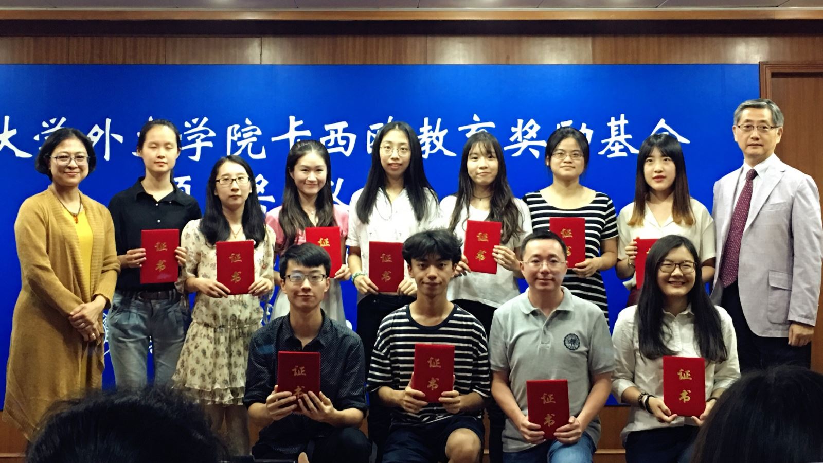 本年度卡西欧奖教学金共颁出教师组优秀论文奖19人,优秀专著奖2人,优秀教材、翻译、词典奖2人,优秀教学奖5人,学术杰出贡献奖1人。研究生组优秀论文奖4人。本科生组各类单项奖共10人。由卡西欧(中国)贸易有限公司总经理金田公一先生、绅士漫画 副院长卢丽安、学术委员会主席魏育青为获奖师生颁奖。