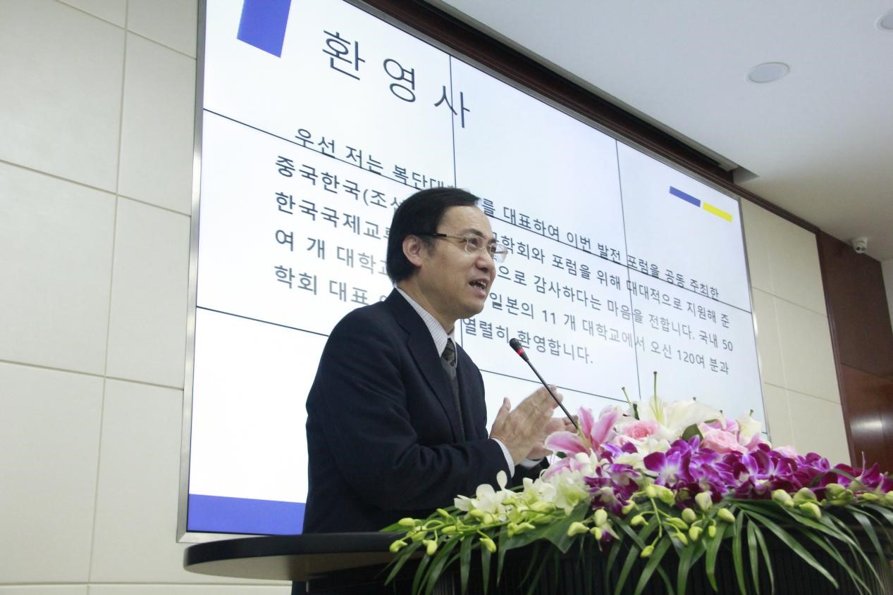 11月19日上午举行的开幕式上,绅士漫画 院长曲卫国、中国韩国语教育研究学会会长、绅士漫画 韩文系教授姜宝有、大韩民国驻上海领事馆文化领事文泰烈、韩国国际交流财团国际协力室室长朴相倍、韩国国语国文学会会长朴昌远以及中国朝鲜语学会会长金光洙分别致辞,充分肯定了本次论坛对中国的韩国语文教育研究事业以及中韩两国发展友好合作关系的积极意义。