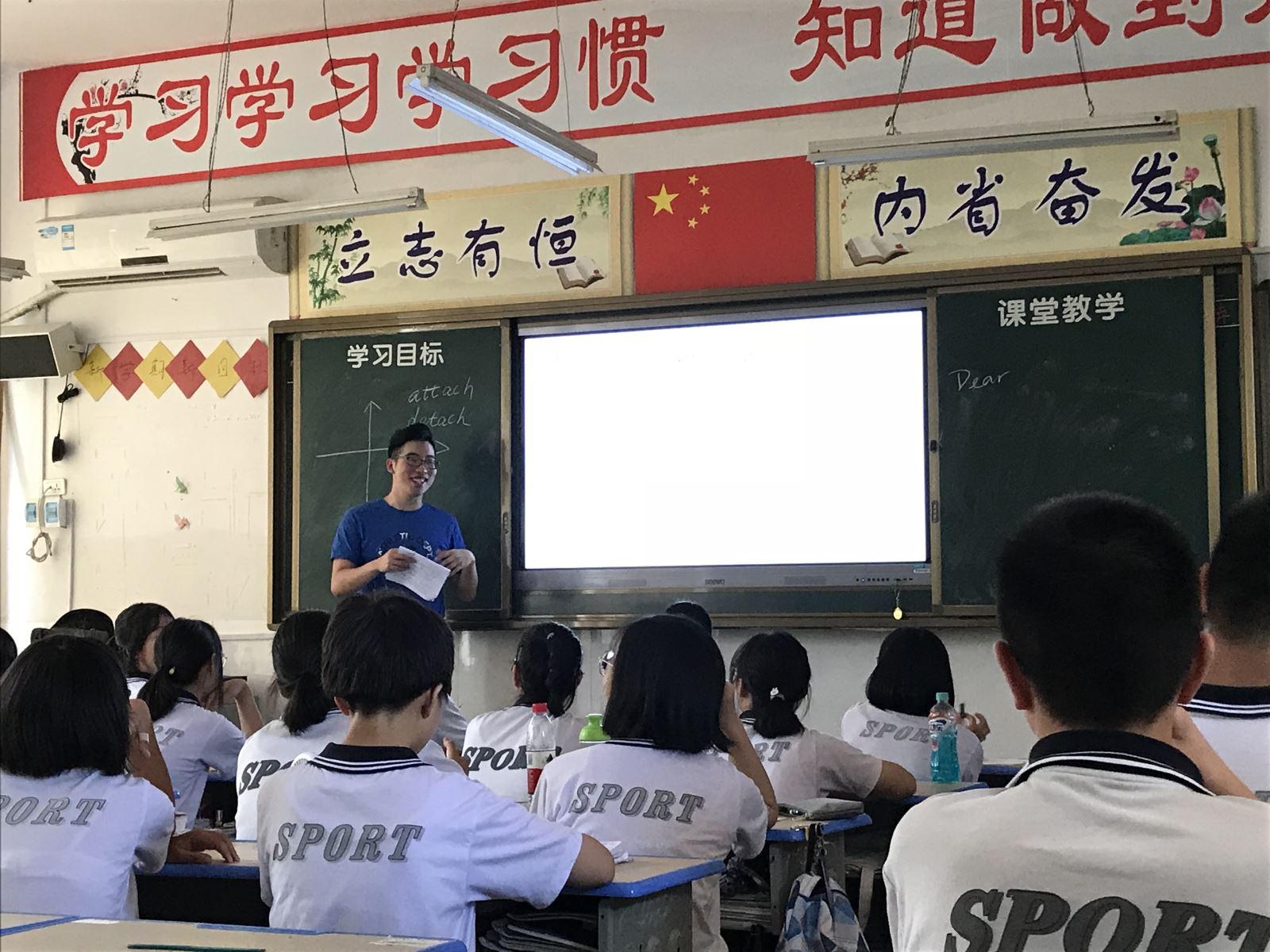 语法课、精读课、文学课、影视课、视听说课、外交课……支教队为竹溪一中的同学们设计并准备了丰富多彩、满满当当的英语课程。同时,支教团队也注重在教学过程中查漏补缺,结合当地同学的实际水平,不断完善教学计划和方案。每天中午,支教团队都会利用午休时间召开集体备课会,高永伟老师和许永健老师带领大家总结当日教学情况、交流授课经验,研讨教学及活动安排。每天晚上,支教队员还会在晚自习时间收集同学们对白天课程和学习情况的反响,并进行一对一反馈,通过不断完善课程和教学,教学活动收到了良好的效果,受到了当地师生的一致好评。