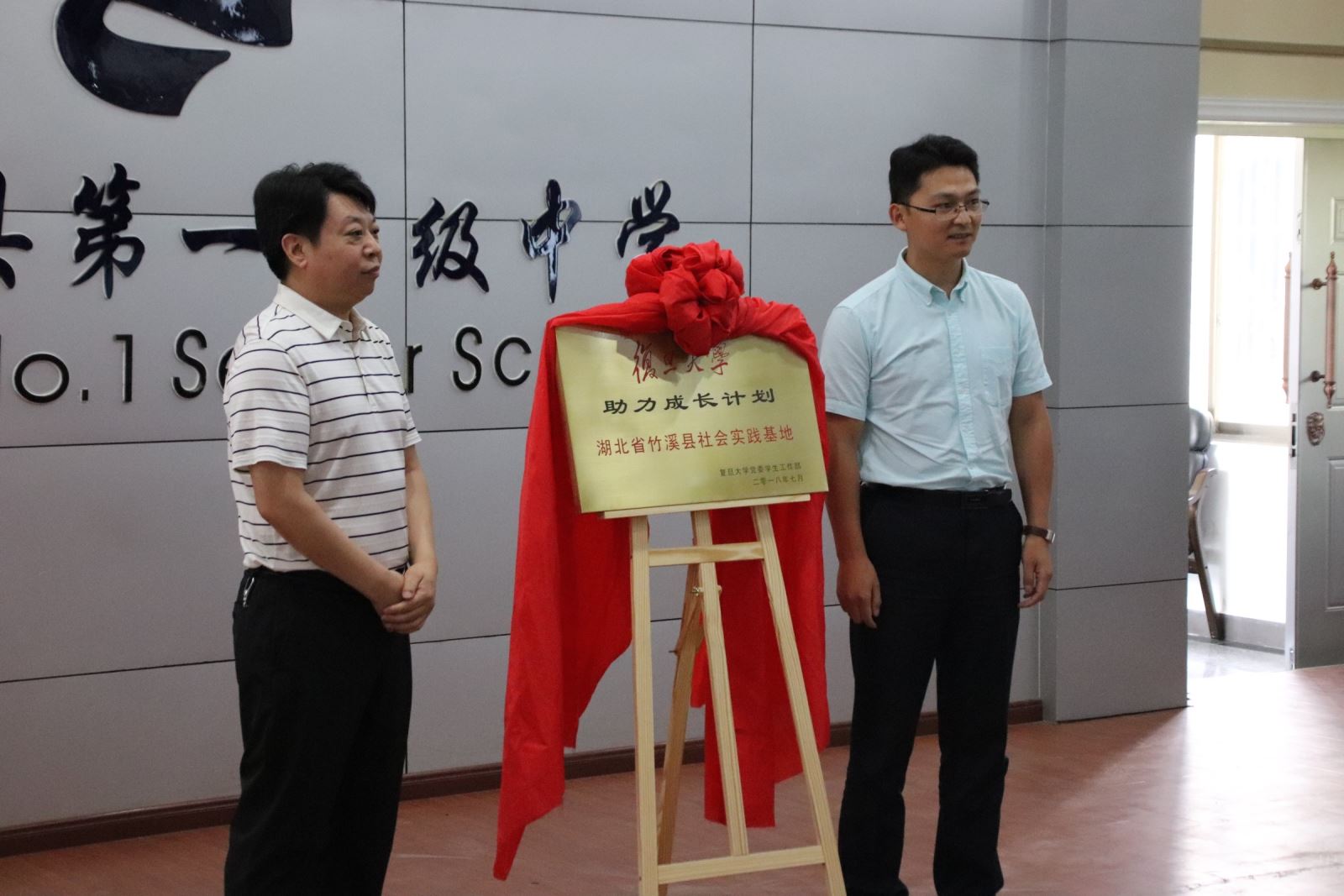 助力成长计划社会实践基地”揭牌仪式,竹溪县委常委、组织部长胡贤德和绅士漫画