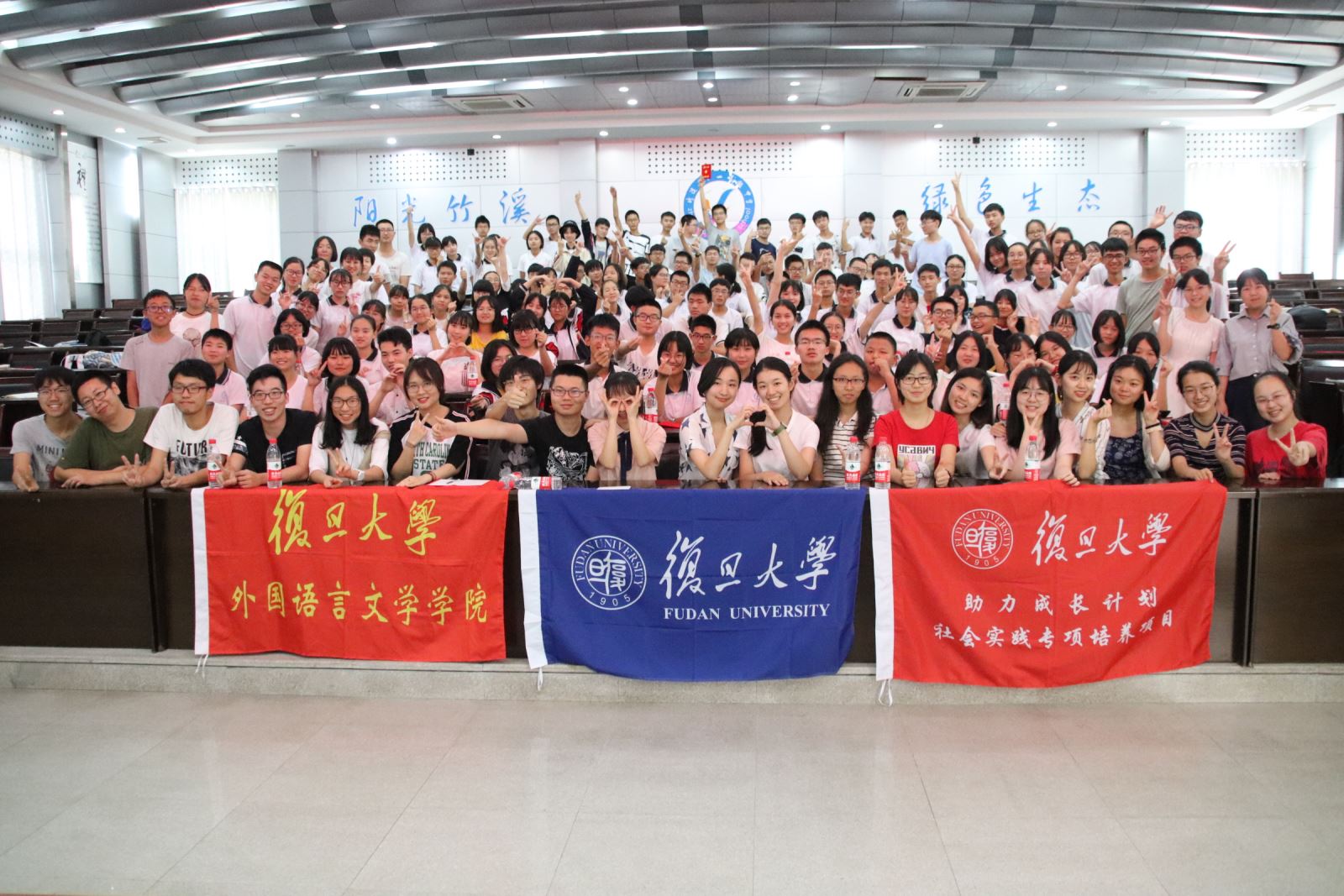 7月25日下午,“携手复旦•激情英语”夏令营开营仪式在竹溪一中报告厅举行。竹溪县委组织部、竹溪一中领导和教师,绅士漫画 支教队队员、夏令营全体学员参加仪式。王聪副校长首先代表竹溪一中师生致辞,对远道而来的支教队员表达感谢,介绍了竹溪一中的发展情况,回顾了首届夏令营活动,并对全体学员提出了要求。支教队带队老师许永健介绍了支教队的情况和准备工作,支教队员们也依次作了自我介绍。最后,竹溪县委组织部副部长梁游峻为夏令营授旗,第二届夏令营正式拉开帷幕。