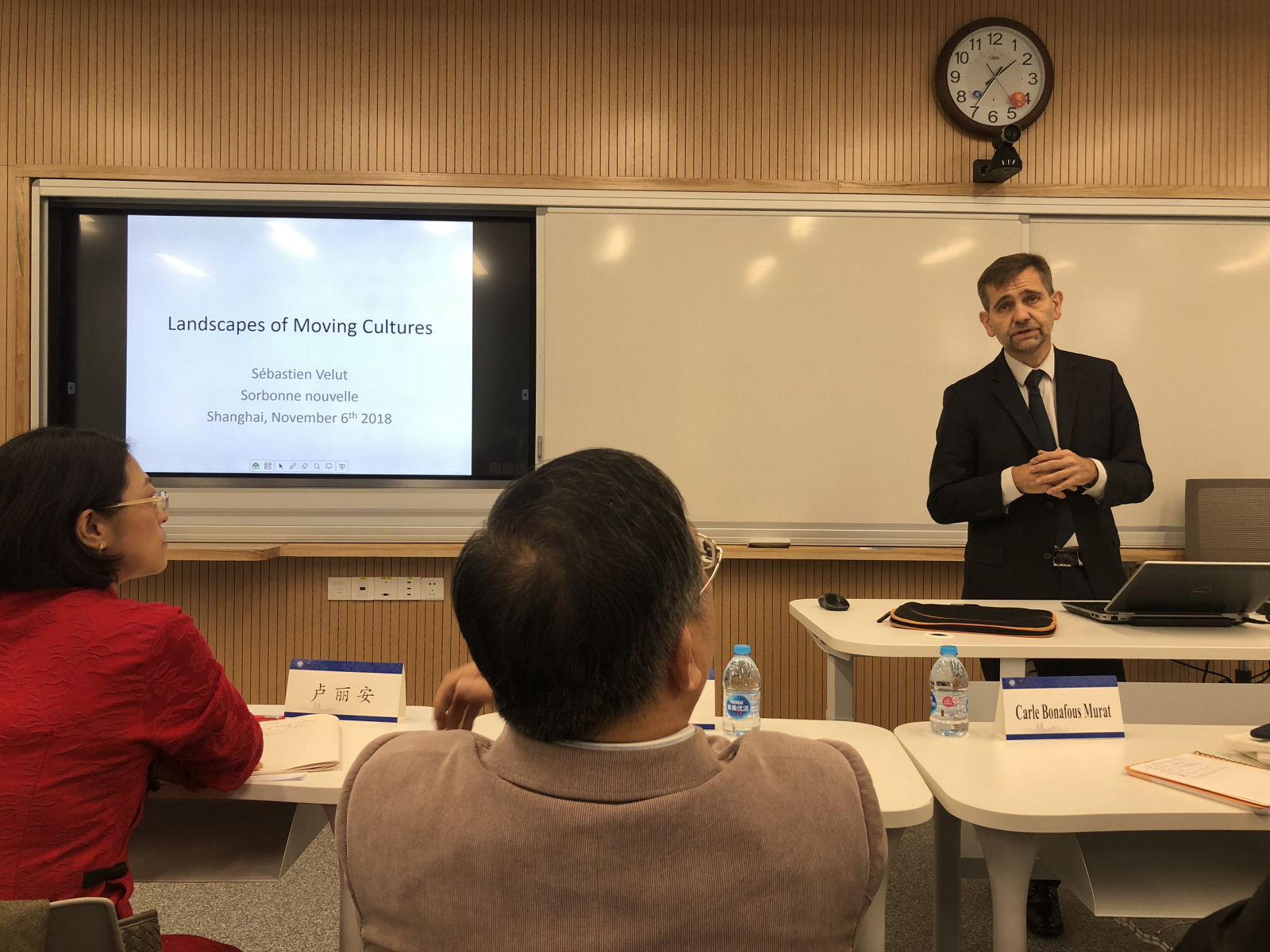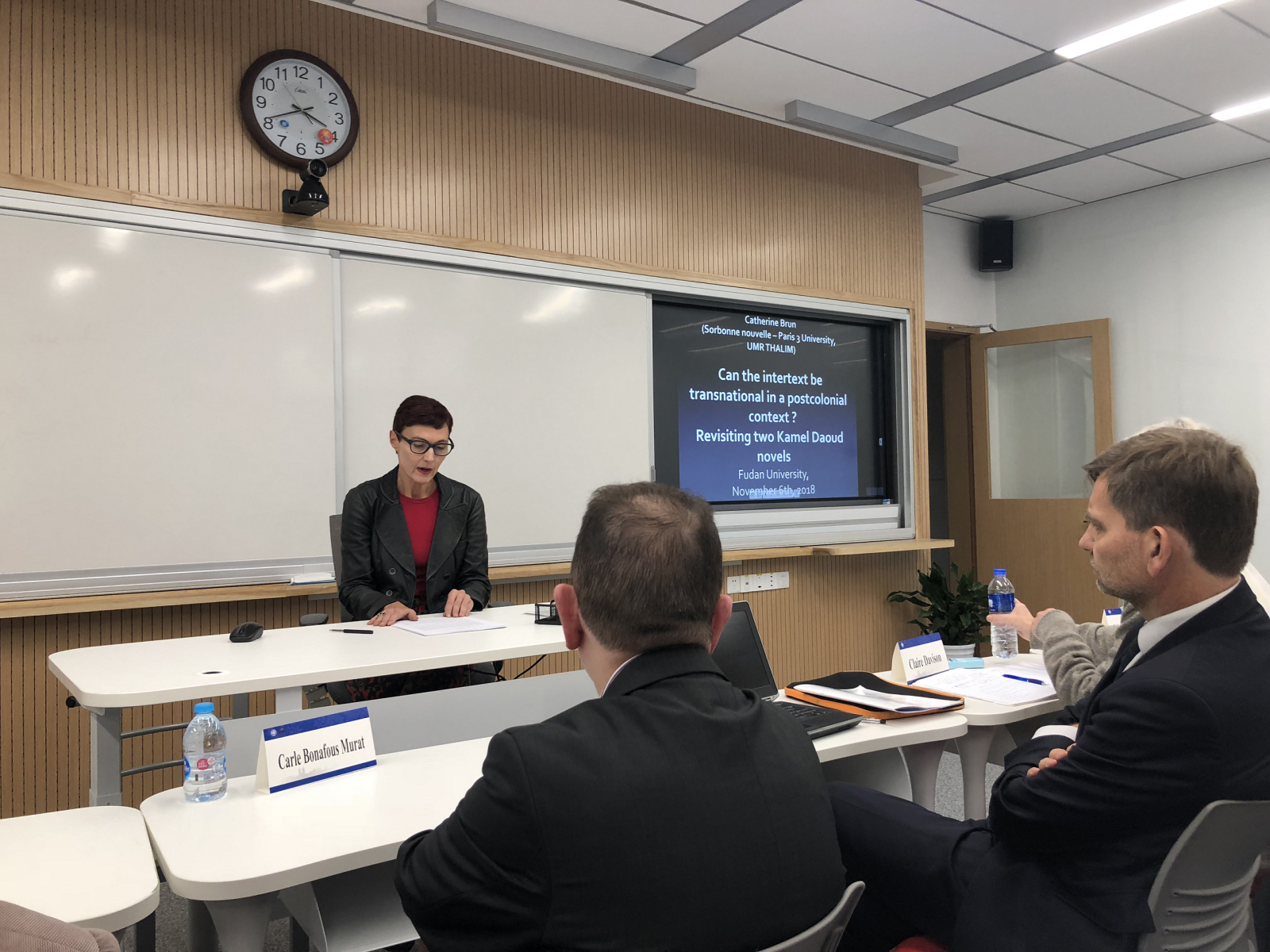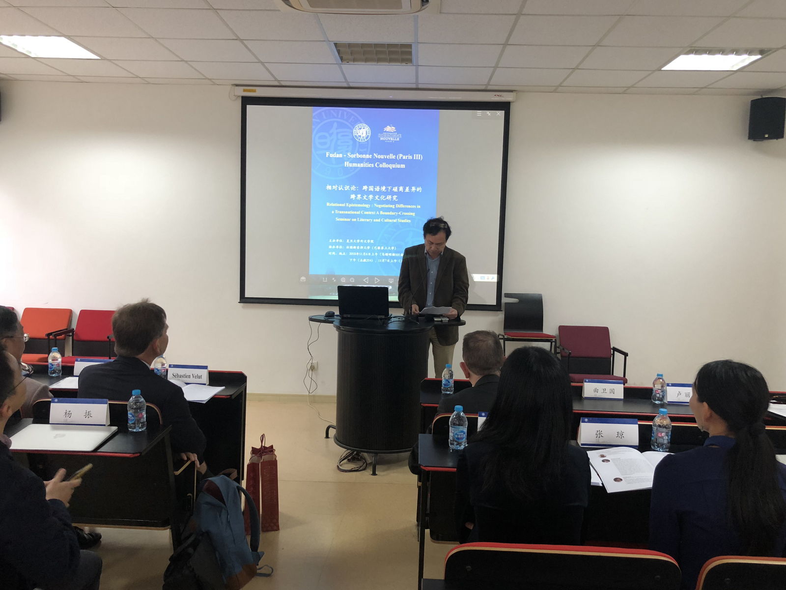 11月6号上午,巴黎三大的教授们在光华楼东辅楼接受了副校长陈志敏等领导的接待,双方表达了今后加强合作交流,共促教育发展的愿望。接着,一行人在马锦明楼参与了会议开幕仪式,巴黎三大校长兼爱尔兰文学教授Carle Bonafous Murat和复旦绅士漫画 院长曲卫国教授做了开幕发言。卢丽安教授主持了会议。