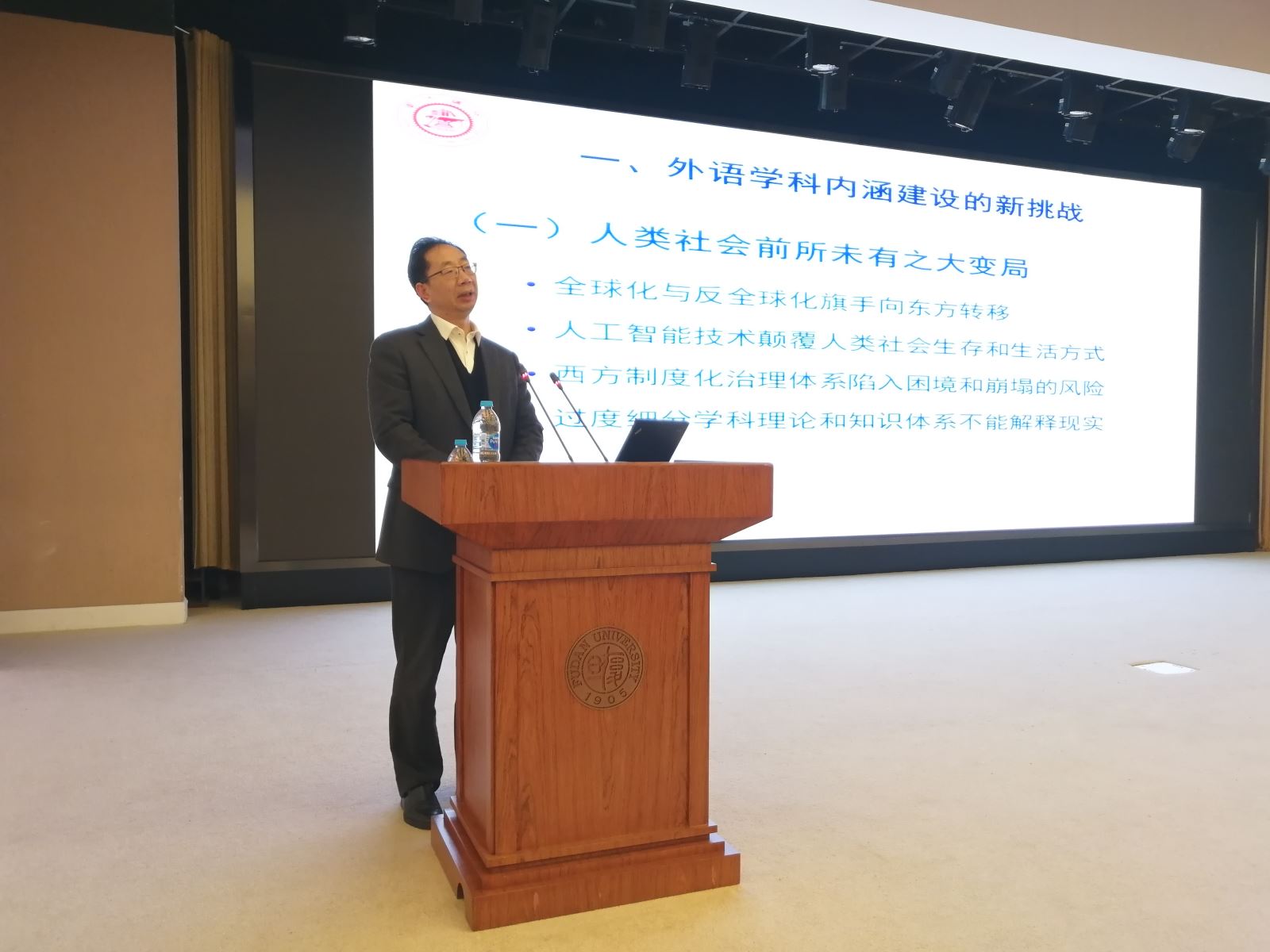 上海交通大学彭青龙教授从多个角度论述了外语学科内涵建设的新挑战,梳理了外语学科阶段性使命的变化,归纳了外语学科内涵建设的新特点,并就新时代外语学科学术话语体系构建新担当等问题提出了思考。