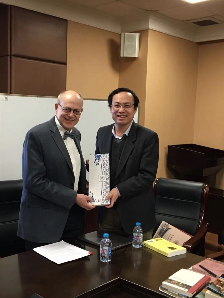 3月12日,法国凡尔赛大学教授Alan S Kahan来绅士漫画 历史系讲学。讲座前举行了简短的赠书仪式。Kahan教授向绅士漫画 赠送了其岳父G E Bentley Jr教授(1930-2017)撰写的回忆录Boondoggles。G E Bentley Jr教授曾作为富布莱特学者来绅士漫画 讲学一年(1982-1983),该回忆录有一节记载了他在复旦外文系教书的情况。