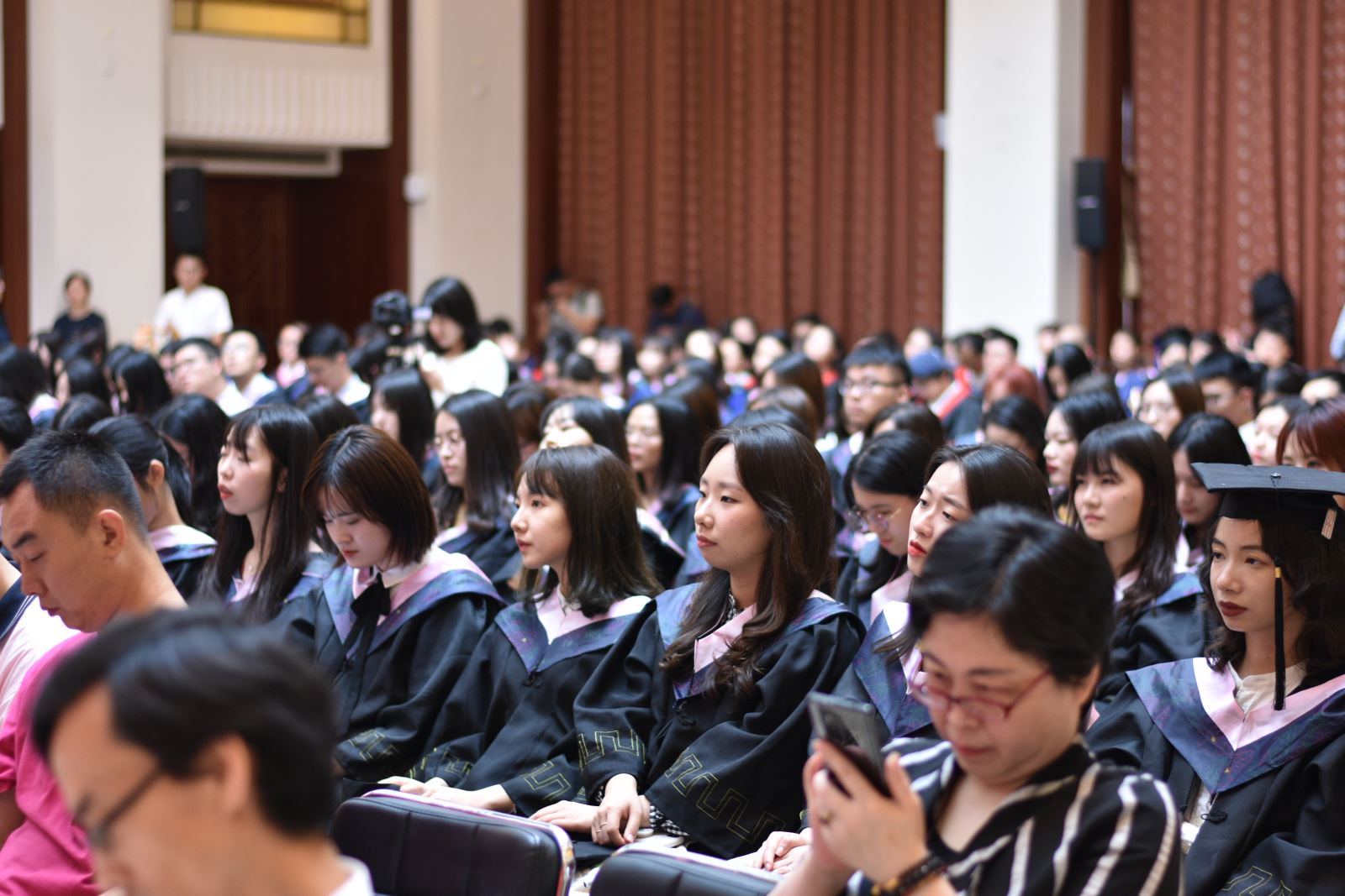 典礼开始前,全场师生观看了2019届本科生制作的毕业纪念短片,同学们回顾了几年来的学习与生活,表达了对师长和母校的感激、不舍,老师们也表达了对同学们的深情祝福。