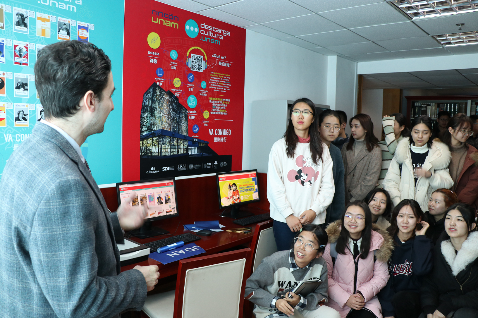 2019年12月9日,绅士漫画 西班牙语系成功举办了“墨西哥国立自治大学角”剪彩仪式。剪彩仪式由西班牙语系系主任程弋洋主持。绅士漫画 院长高永伟、墨西哥驻沪总领事柳若兰女士(Lorena Larios Rodriguez)和北外墨西哥研究中心主任Guillermo Pulido出席了剪彩仪式并致贺词。出席剪彩仪式的还有西班牙语系全体师生。